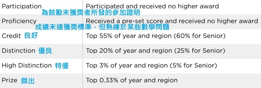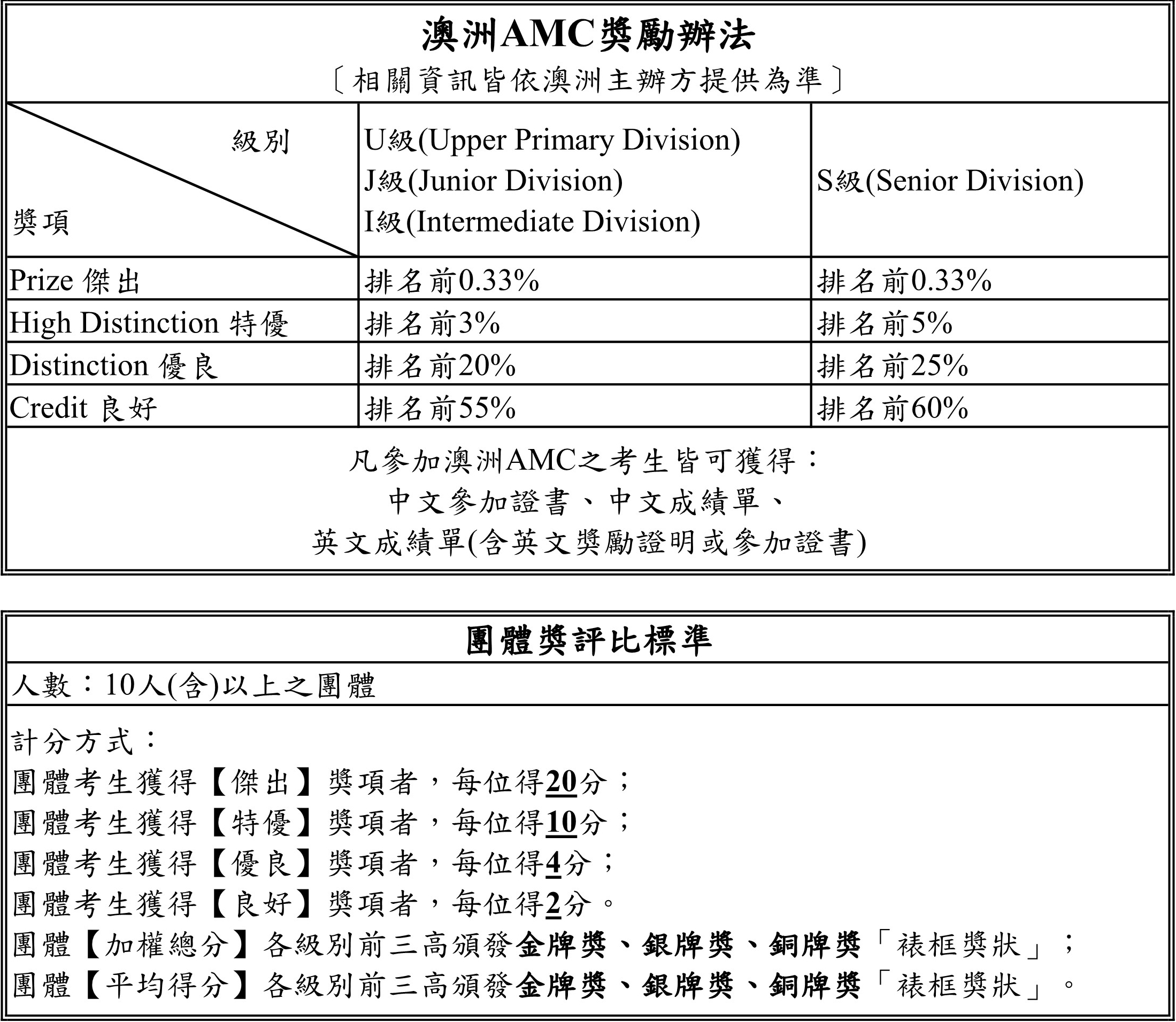 獎勵標準【實際分數線請參考中文成績單背面所示】