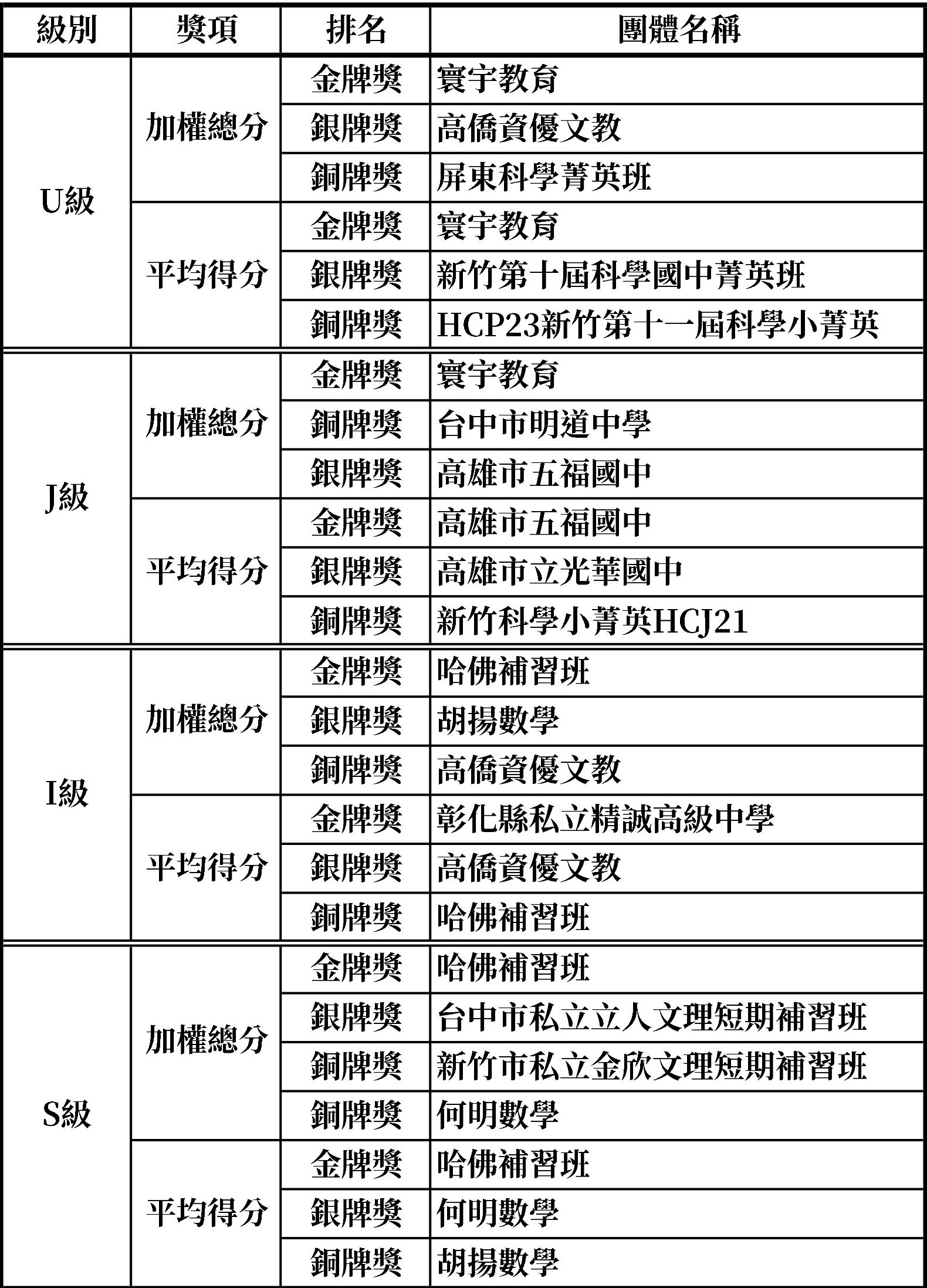 *得獎及表現欄位若為空白,代表未達獲獎標準